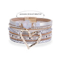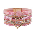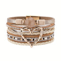 Women's Bohemian Style PU Leather Bracelet - Multi-Layer Black Braided Design with Crystal Accents, Golden-Tone Heart Pendant | Elegant Magnetic Clasp | Perfect for Daily Occasion