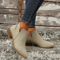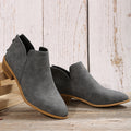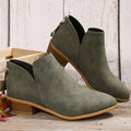Women's Chunky Heeled Ankle V Cut Boots, Stacked Heeled Back Zipper Pointed Toe Shoes, Women's Footwear