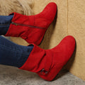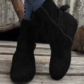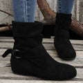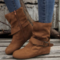 Womens Classic Solid Color Ankle Boots with Round-Toe Design - Fashion Buckle Belt & Side Zipper Closure - Ultra-Comfortable Outdoor Shoes for Stylish Adventures