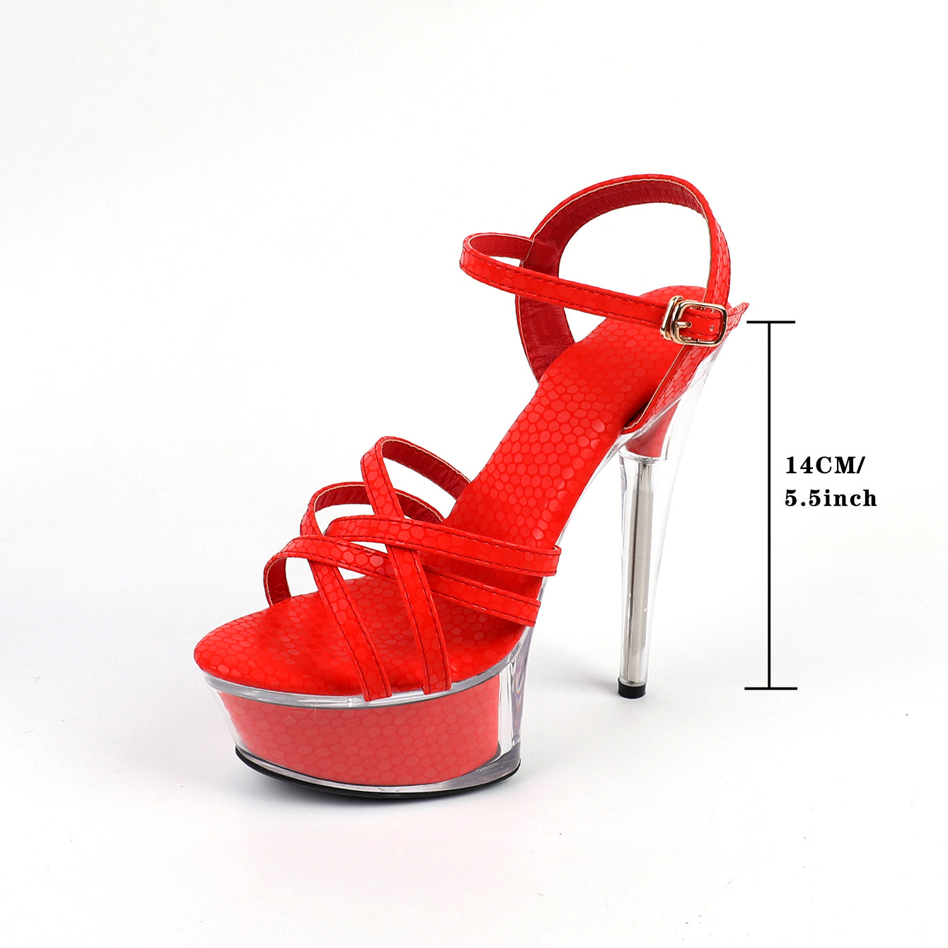 Women's Cross Strap Platform Clear High Heels, Red Ankle Strap Open Toe Stiletto Heels, Sexy Party Dress Evening Shoes