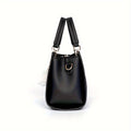 Women'S Elegant Faux Leather Handbag with Tassel Embellishment, Lightweight Solid Color Shoulder Bag with Adjustable Strap, Zipper Closure, Polyester Lined, Edge Paint Detail - Available in Multiple Colors