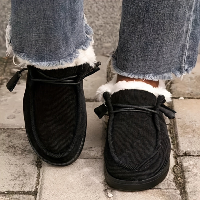 Women's Fluffy Plush Lined Sneakers, Thermal Soft Sole Low Top Shoes, Winter Warm Outdoor Walking Flat Shoes