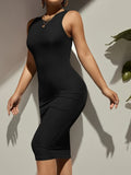 Women's High Elasticity Ribbed Dress - Sleeveless Round Neck Bodycon Midi Dress, Knee-Length Summer Dress with No Belt, Machine Washable Solid Color Elegant Casual to Formal Wear, Formal Attire, Sophisticated Style, Stretchy