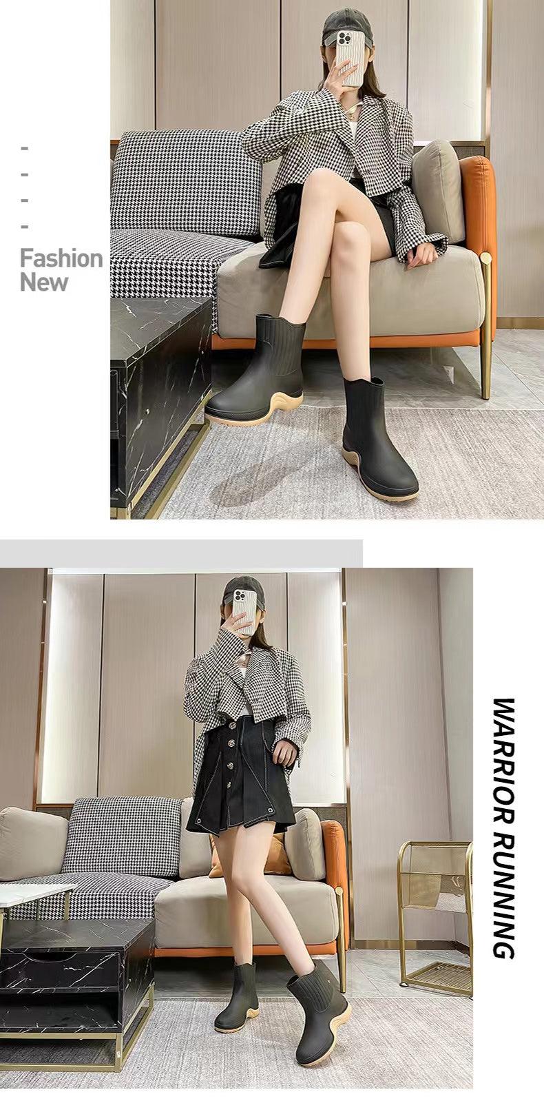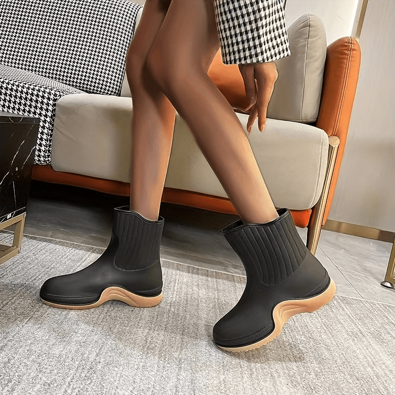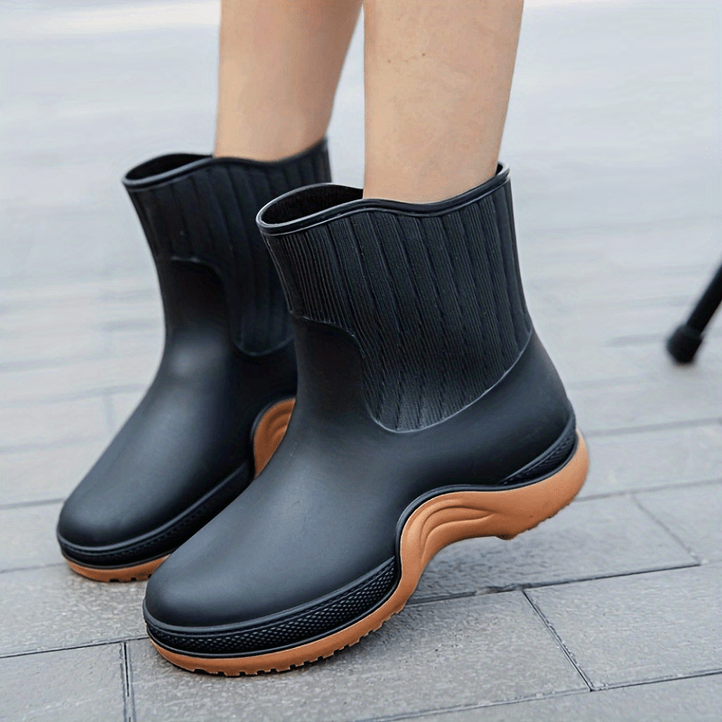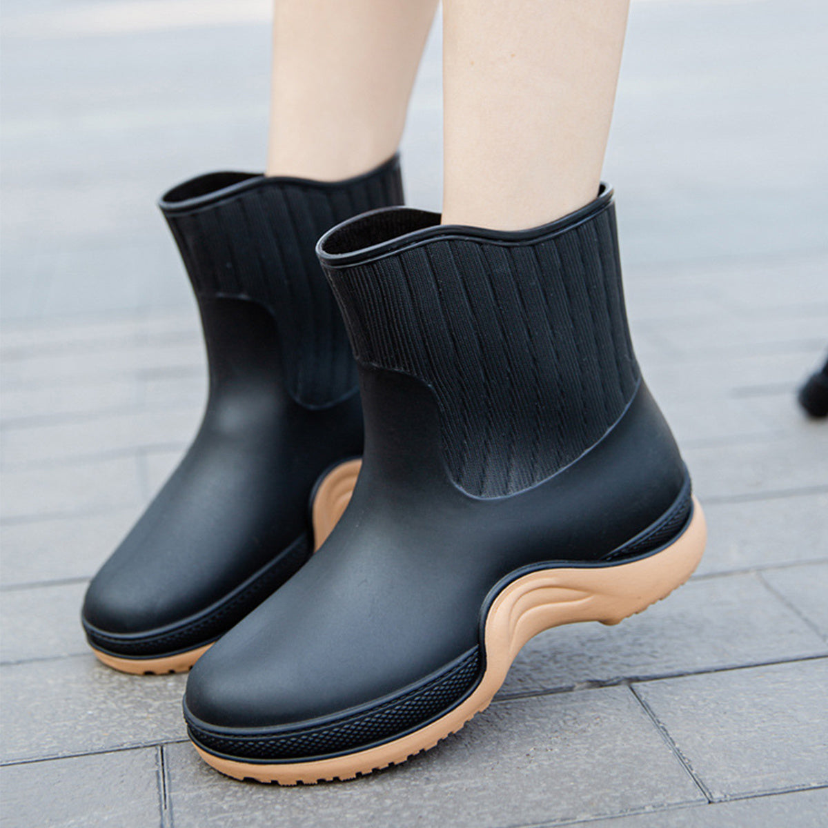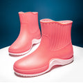 Women's Platform Ankle Rain Boots, Waterproof Solid Color Slip On Shoes, Outdoor Non-slip Shoes
