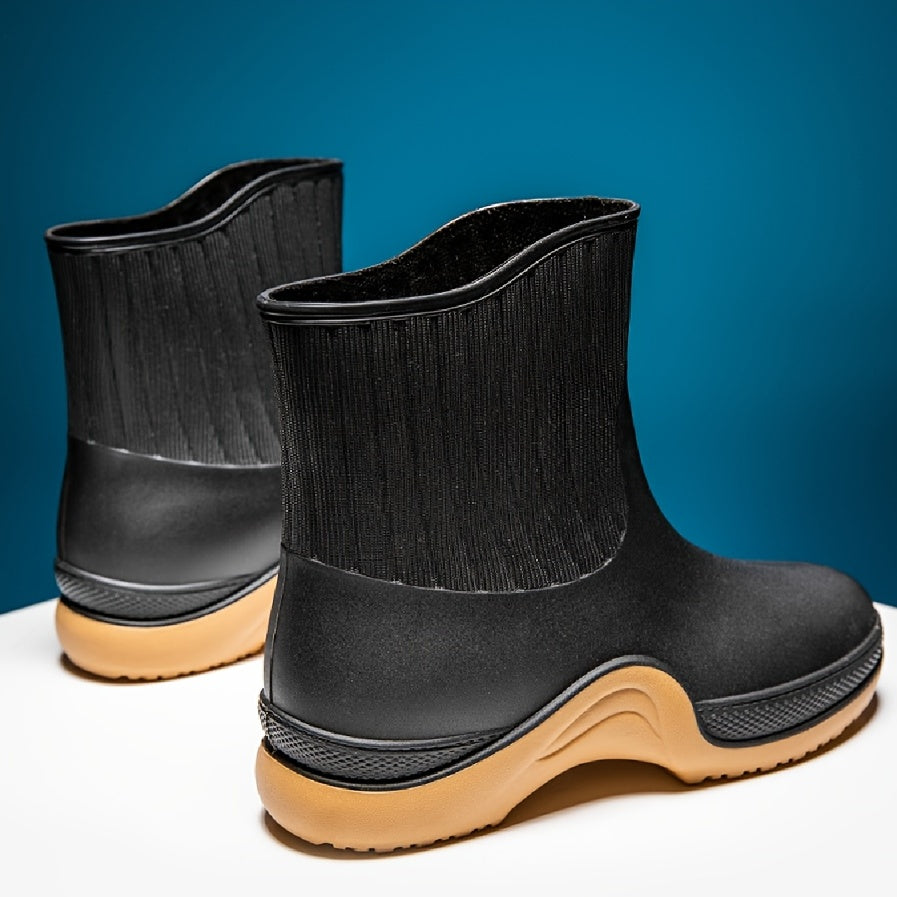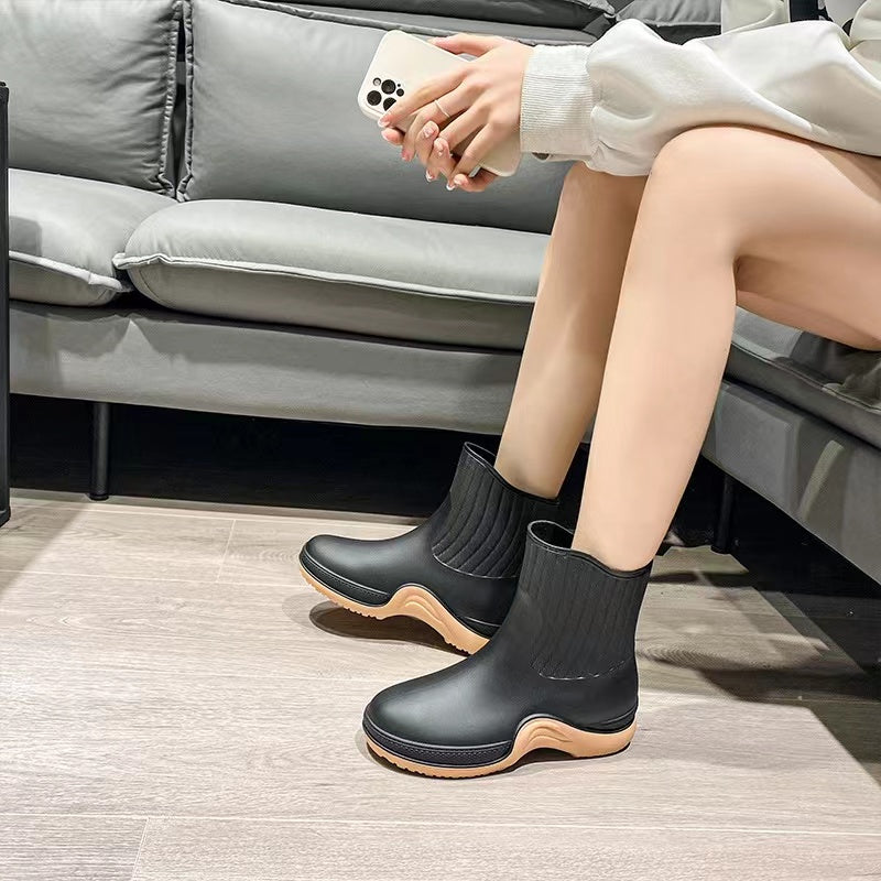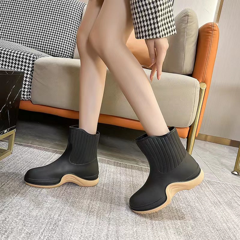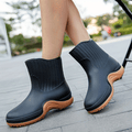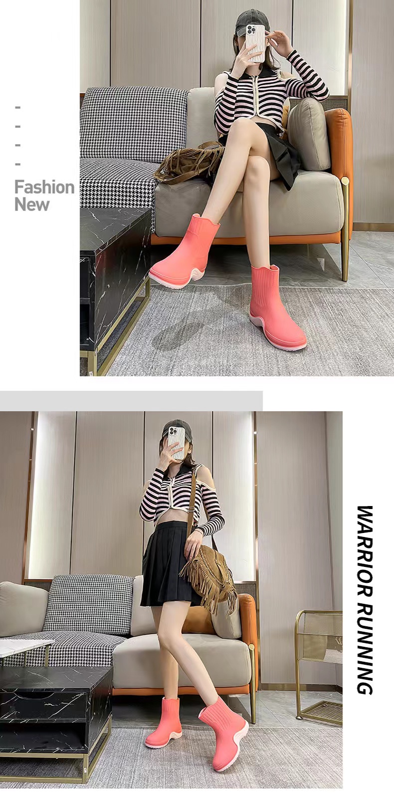Women's Platform Ankle Rain Boots, Waterproof Solid Color Slip On Shoes, Outdoor Non-slip Shoes