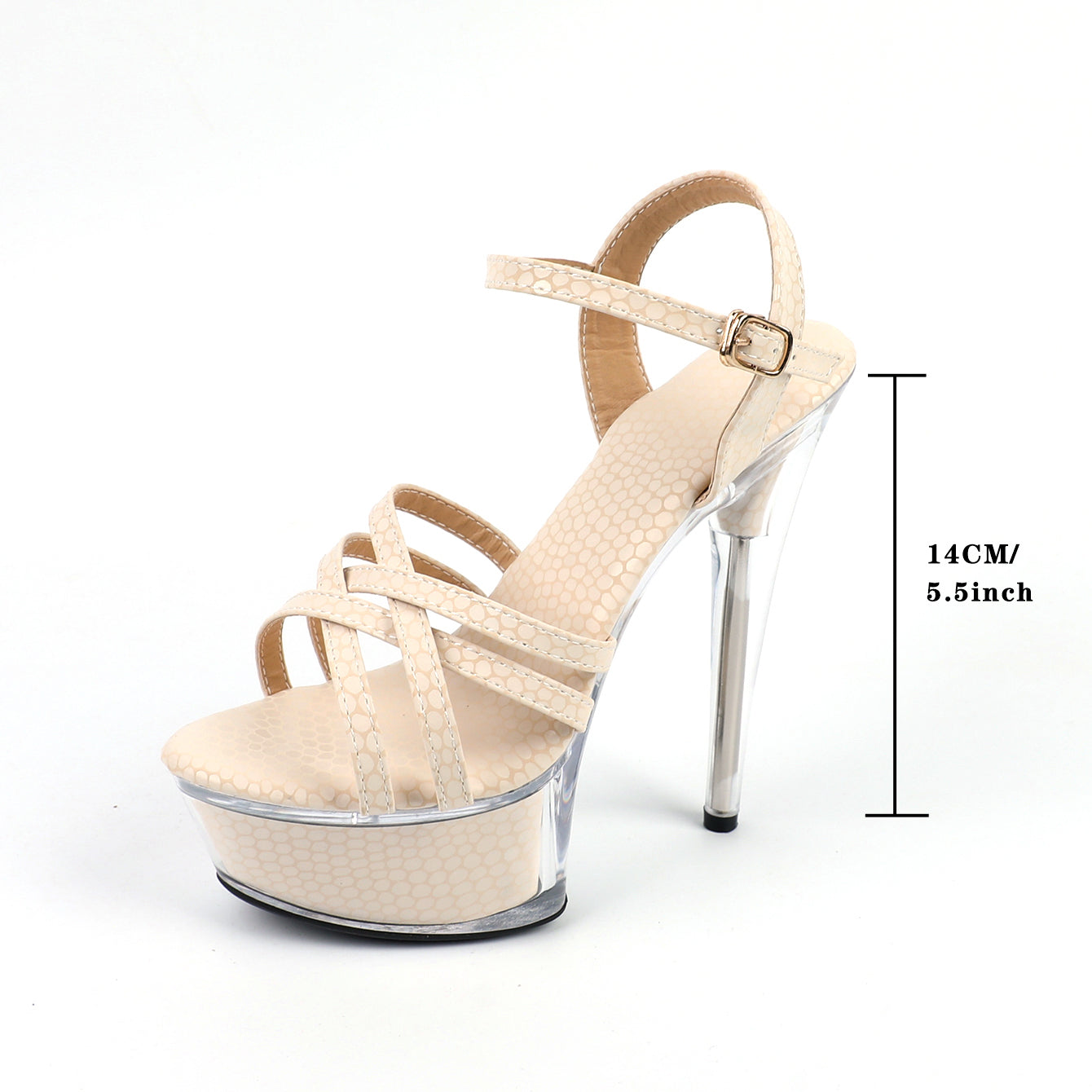 Women's Platform Criss Cross Stiletto Sandals, Open Toe Round Toe Ankle Strap Solid Color High Heels, Women's Fashion Shoes