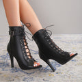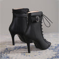 Women's Pointed Toe Lace-up High Heels, Sexy Black Buckle Belt Stiletto Heels Boots, Cross Strap Sandals