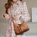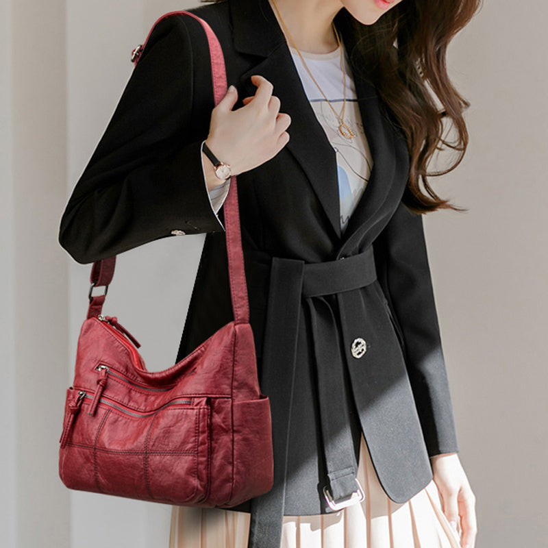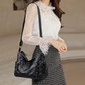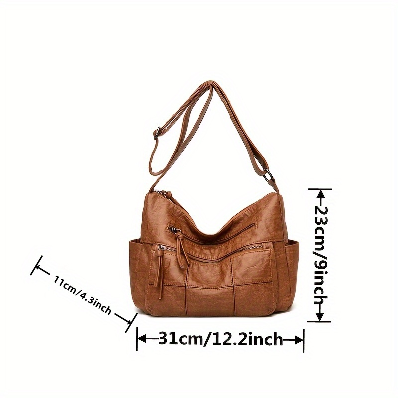 Women'S Retro Synthetic Faux Leather Shoulder Bag, Solid Color, Large Capacity, Adjustable Strap, Zipper Closure, Polyester Lined, Foldable Design for Various Occasions