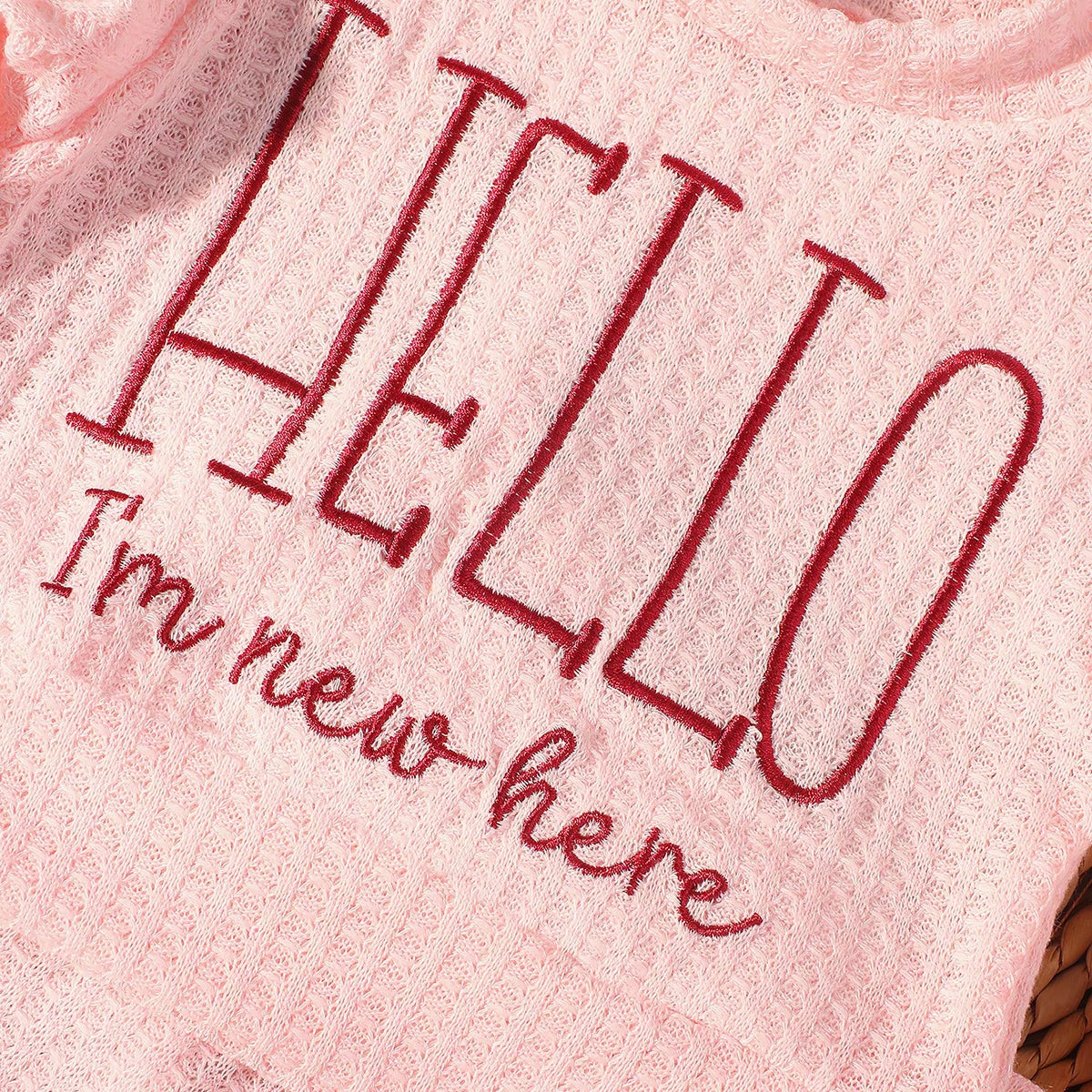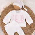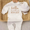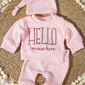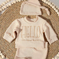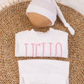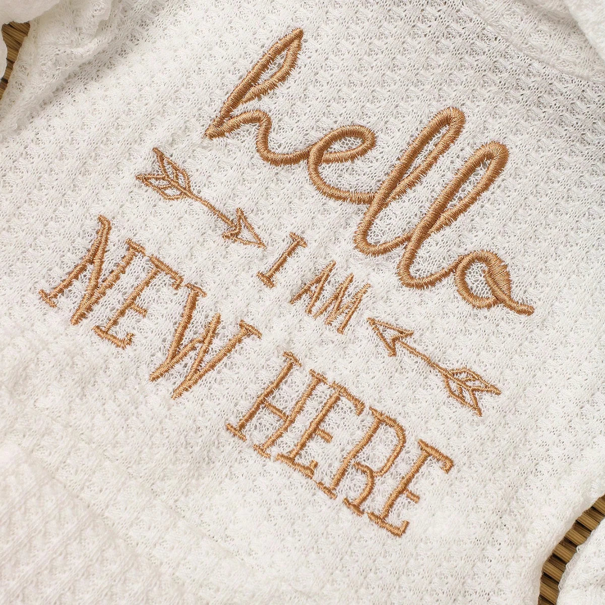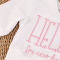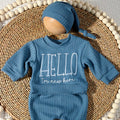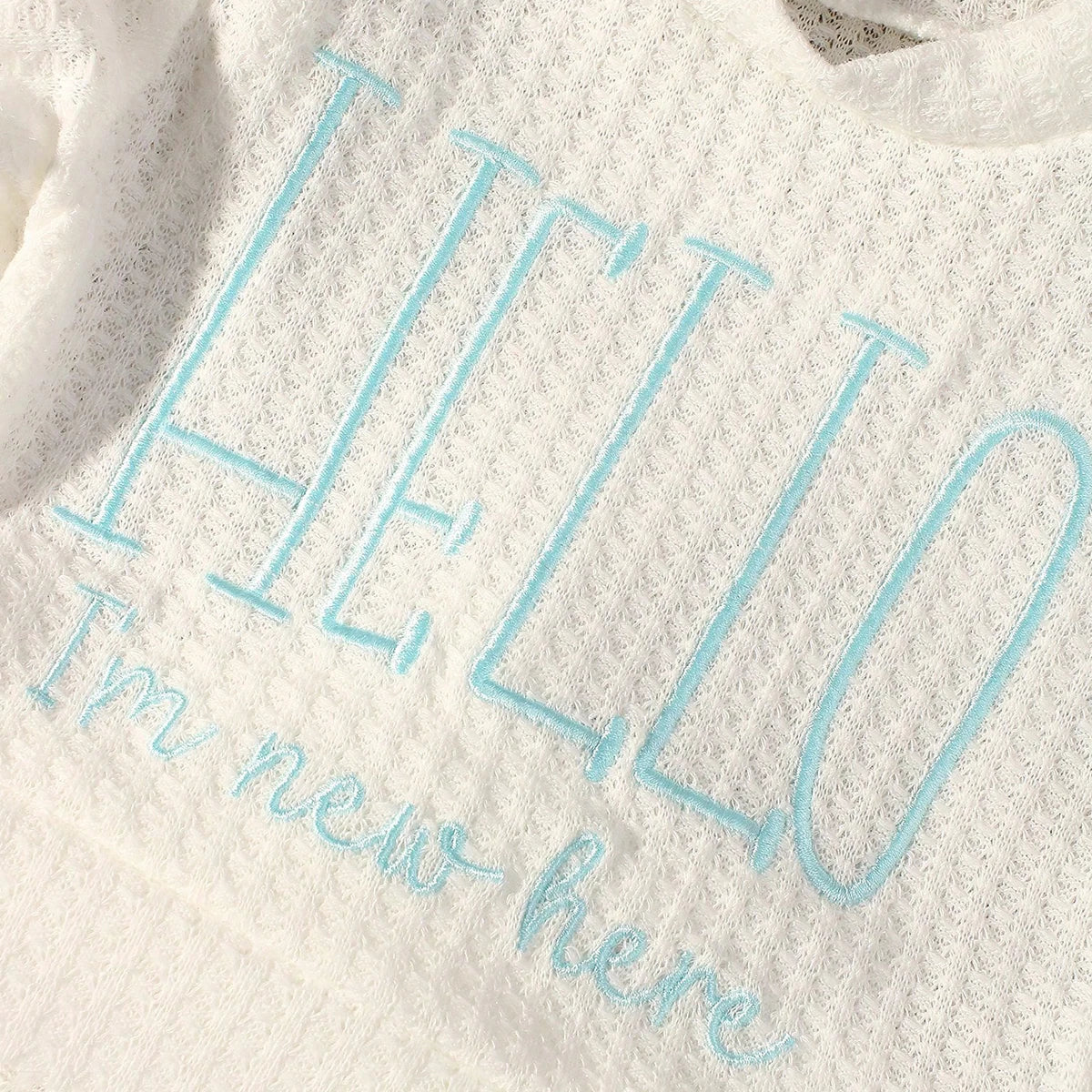Ylsteed "Hello" Embroidery Newborn Photography Props Infant Romper Jumpsuit with Bow Hat Baby Coming Home Outfit Baby Photo Gift