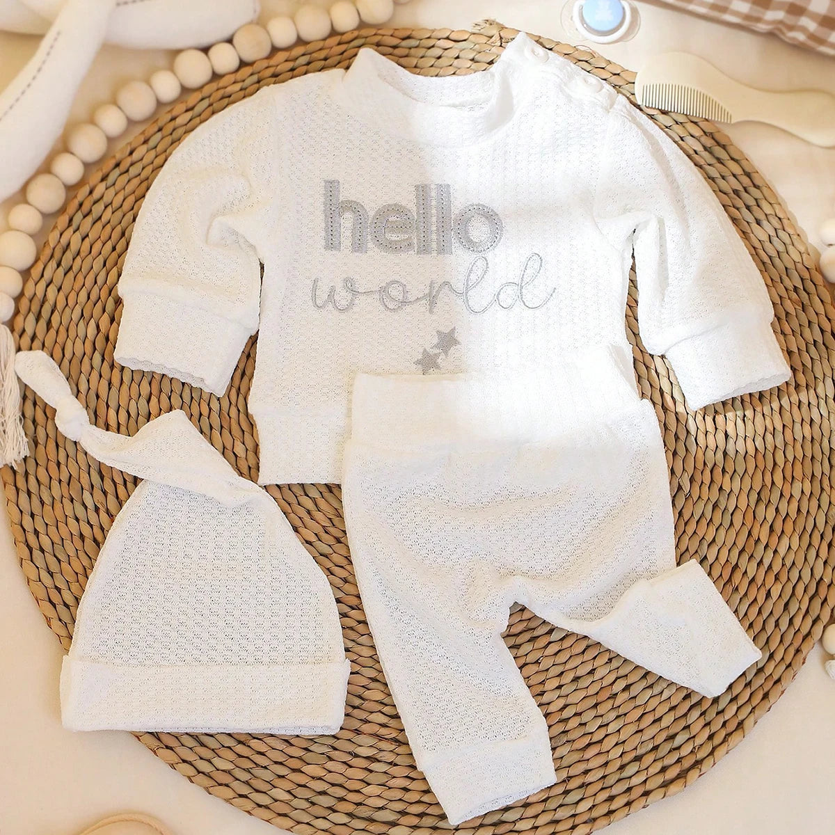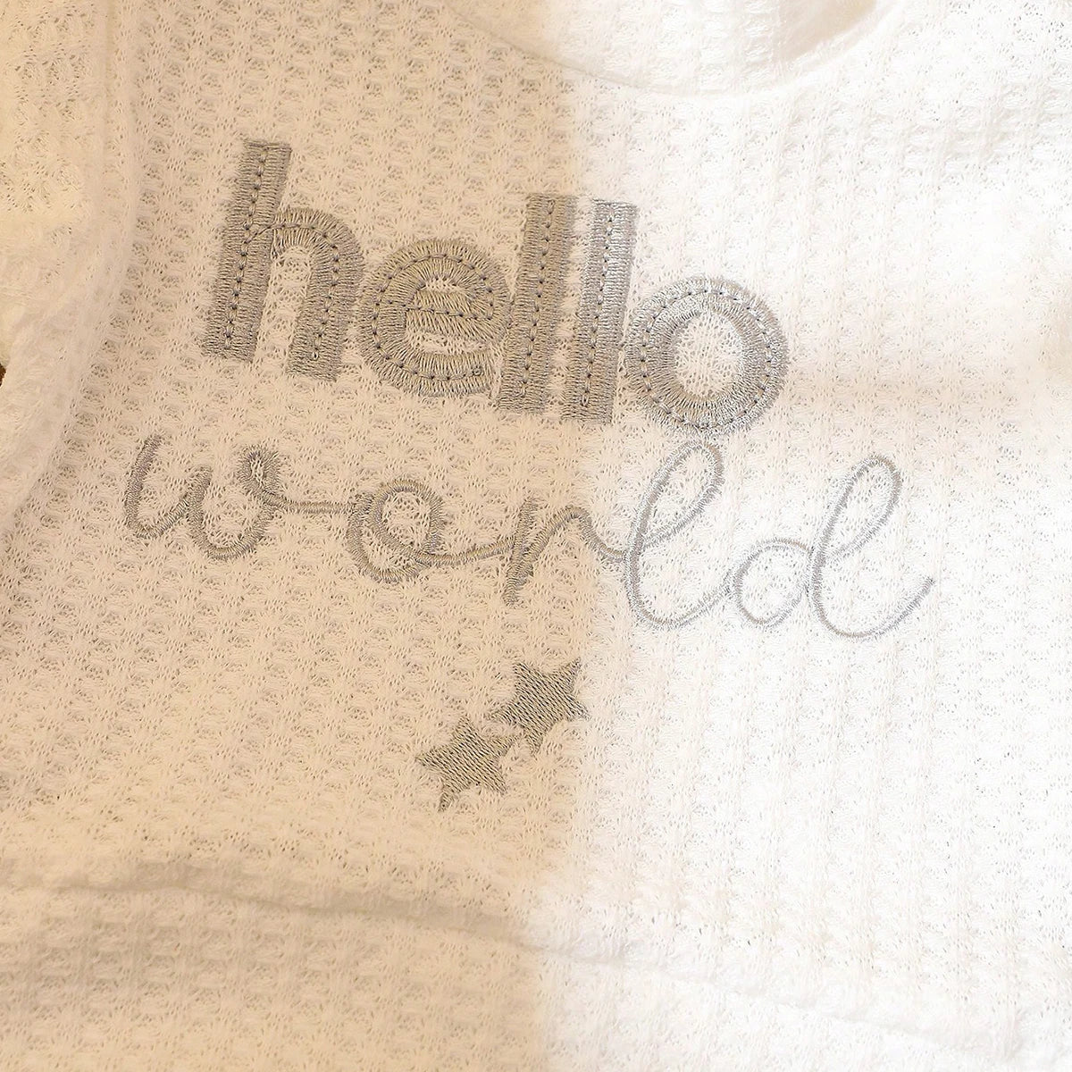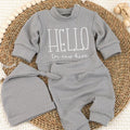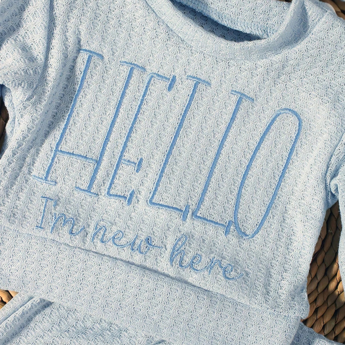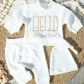 Ylsteed "Hello" Embroidery Newborn Photography Props Infant Romper Jumpsuit with Bow Hat Baby Coming Home Outfit Baby Photo Gift