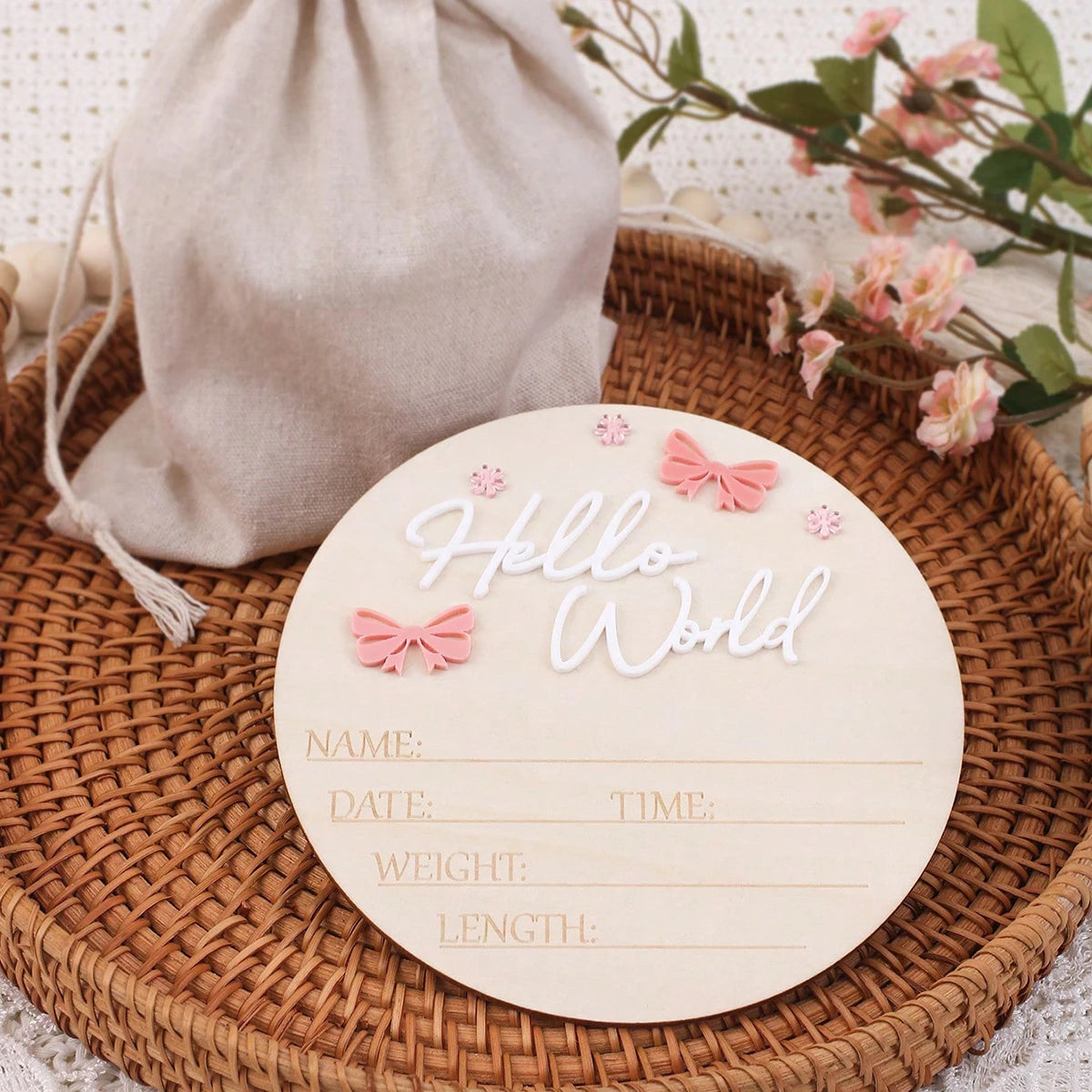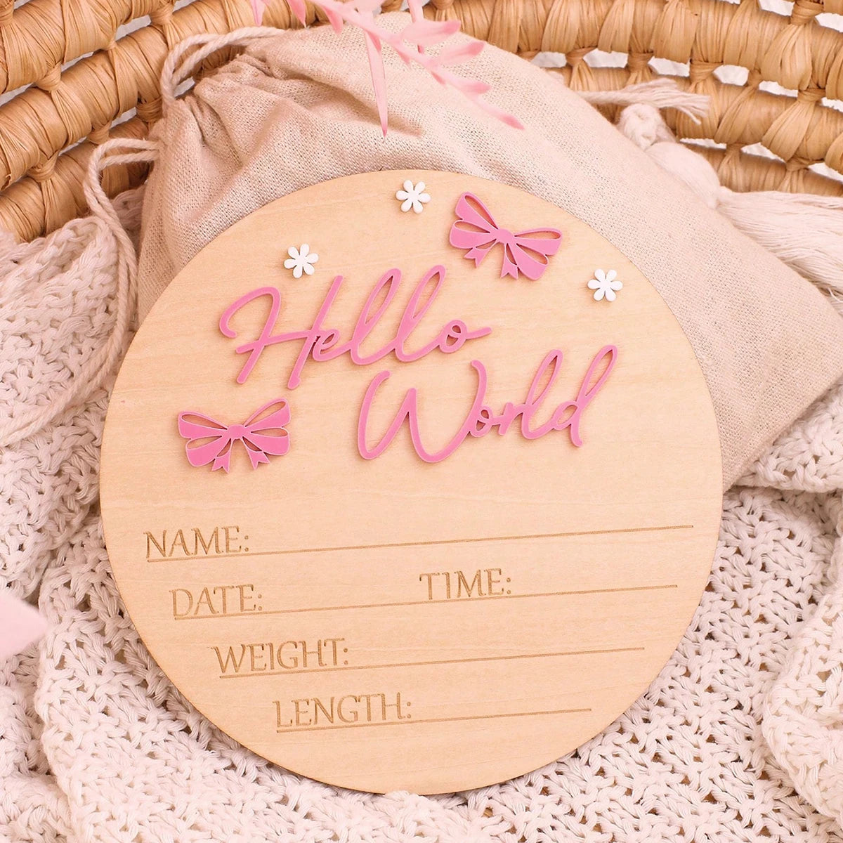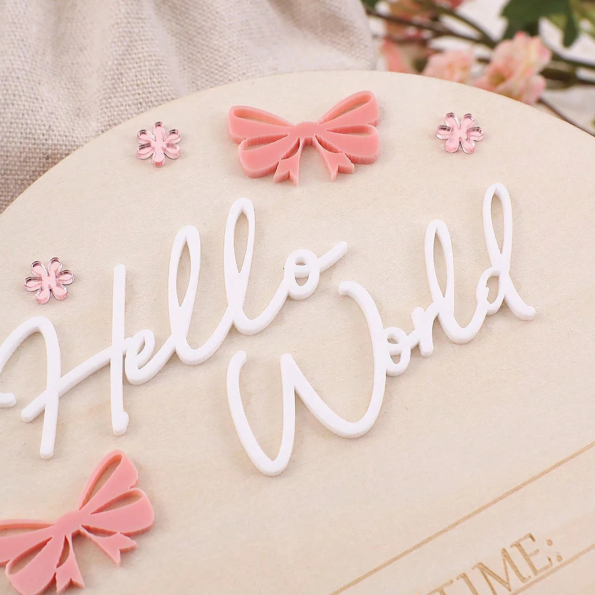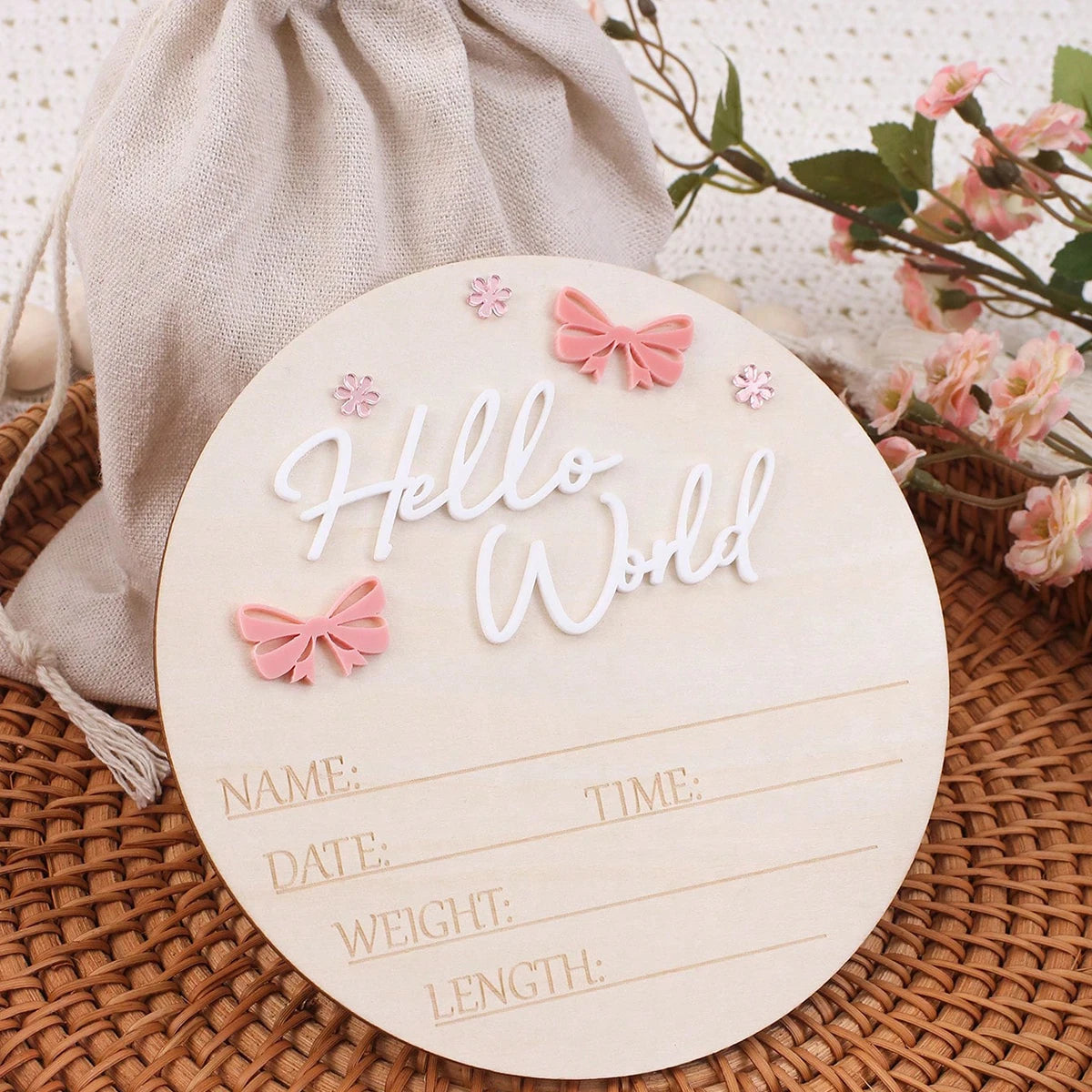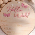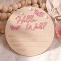 Ylsteed hello world newborn name sign dusty pink butterfly star deco baby birth announcement sign for hospital newborn props
