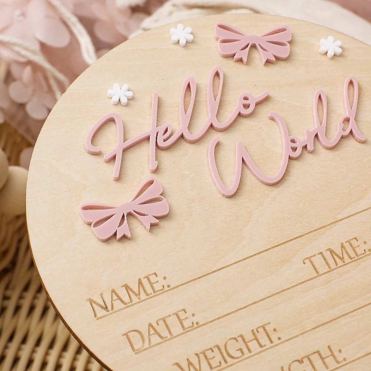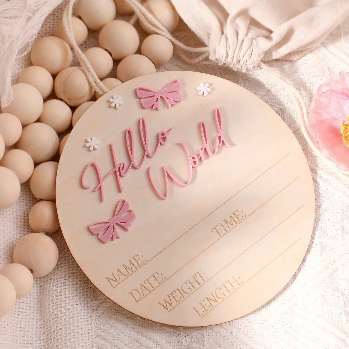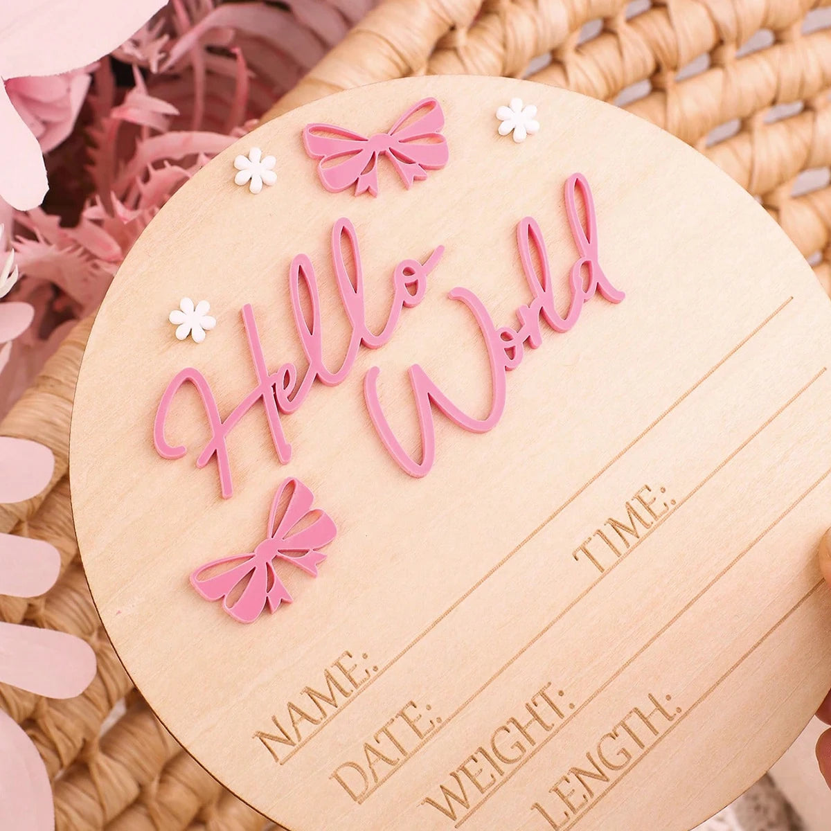 Ylsteed hello world newborn name sign dusty pink butterfly star deco baby birth announcement sign for hospital newborn props