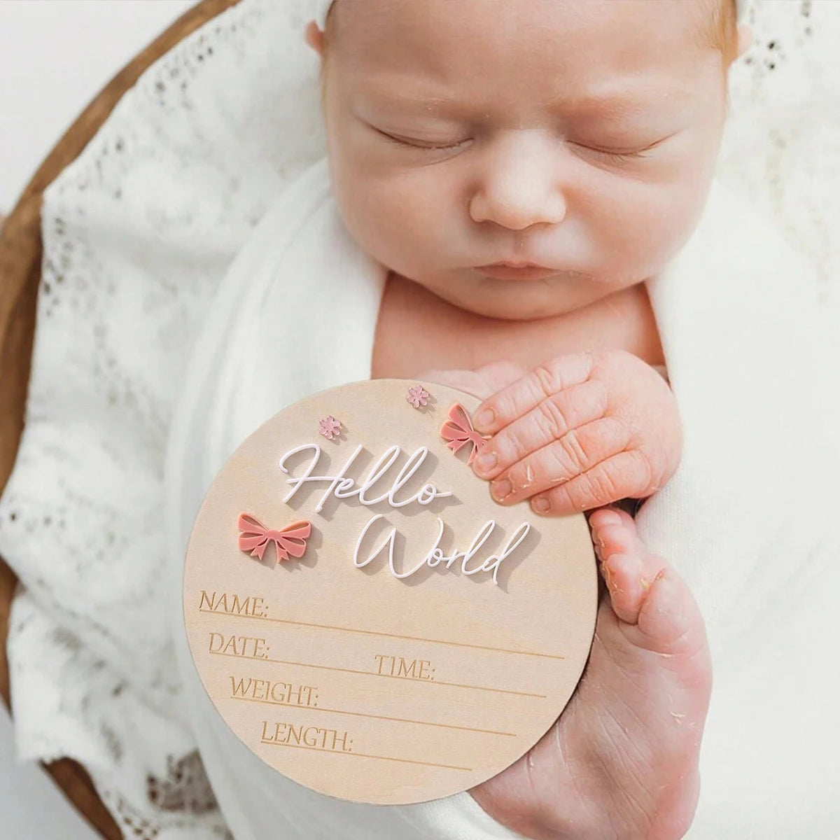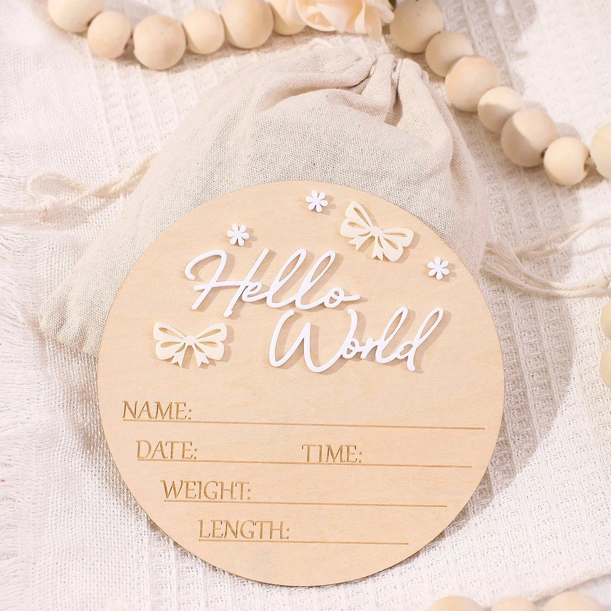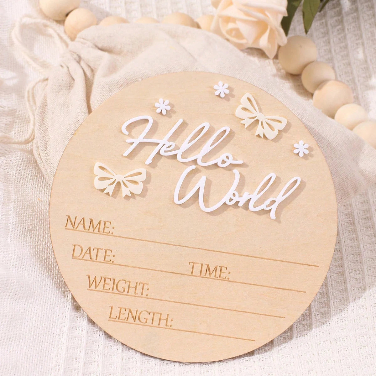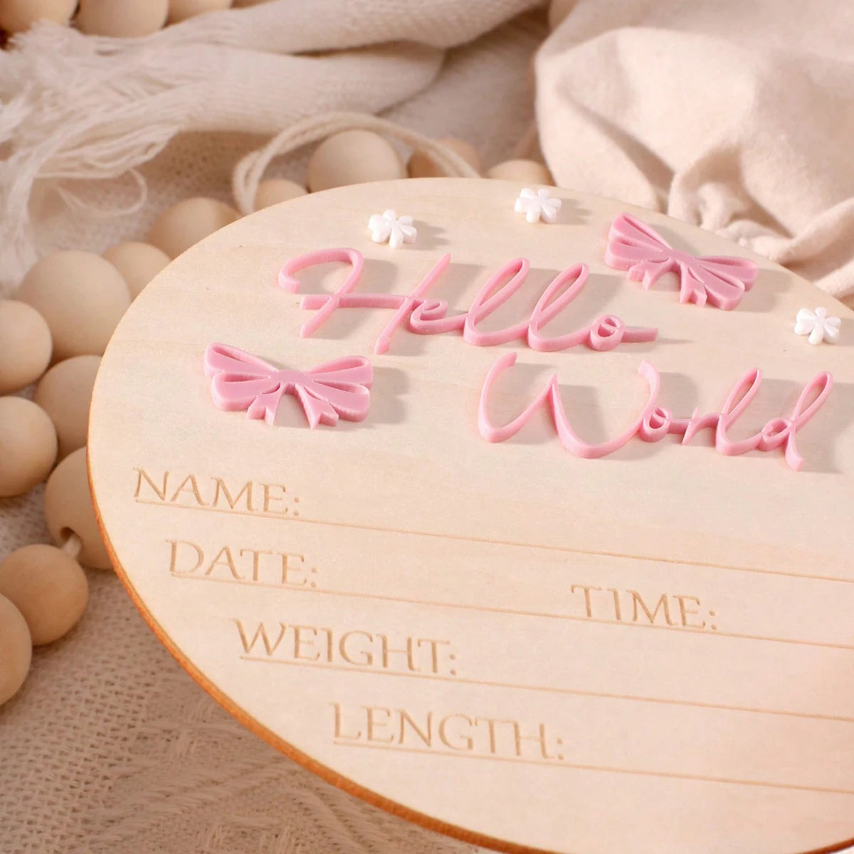 Ylsteed hello world newborn name sign dusty pink butterfly star deco baby birth announcement sign for hospital newborn props